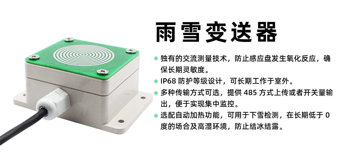 生產(chǎn)生活中,我們需要了解是否有降雨或降雪發(fā)生,及時(shí)了解氣象變化,盡早的趨利避害。但在一些較為遼闊的地區(qū)或不方便到達(dá)的地方,難以靠人工去一一查看是否下雨或下雪,所以會(huì)借助一些傳感器來(lái)幫助我們實(shí)時(shí)了解氣象的變化。其中,對(duì)監(jiān)測(cè)是否有降雨或降雪發(fā)生的儀器是雨雪變送器。