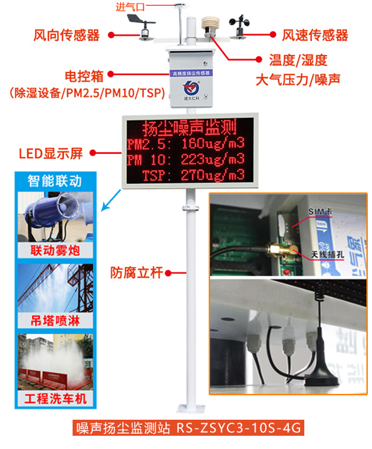 由于建筑工地往往集中于人口密集的城市地區(qū),因此工地?fù)P塵對空氣質(zhì)量的影響日益受到關(guān)注,為了有效監(jiān)控建筑工地?fù)P塵污染,接受市民的監(jiān)督和投訴,共建綠色環(huán)保建筑工地。基于這些原因,我們不僅要監(jiān)測工地上的PM2.5,還要對溫濕度、PM10、噪聲、風(fēng)速風(fēng)向等環(huán)境數(shù)據(jù)進(jìn)行在線監(jiān)測。