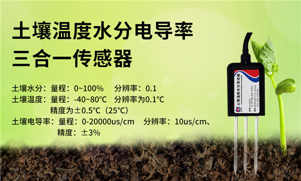 土壤溫度水分電導(dǎo)率三合一傳感器的殼體使用黑色阻燃環(huán)氧樹脂完全密封,采用三頭探針式外觀設(shè)計(jì),探針為采用特殊處理的合金材料制作的電極,耐酸堿腐蝕,能夠采集土壤含水率、電導(dǎo)率及溫度等三個(gè)參數(shù),響應(yīng)快,精度高,互換性好,內(nèi)置溫度補(bǔ)償傳感器,補(bǔ)償范圍 0-50℃。