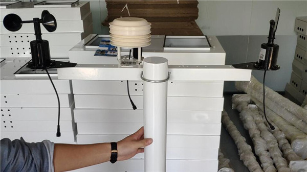 用托片將百葉盒、風(fēng)速傳感器、風(fēng)向傳感器依次固定在橫梁上,風(fēng)向安裝時(shí)需注意傳感器上的箭頭必須正沖北方,避免測(cè)量誤差。