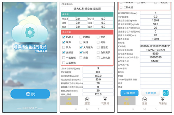 下載安裝配置工具,在揚(yáng)塵主機(jī)開機(jī)的狀態(tài)下搜索無線網(wǎng)并連接。然后點(diǎn)擊下好的配置軟件,不需要賬號(hào)和密碼即可配置顯示標(biāo)頭、噴淋上下限等參數(shù)。